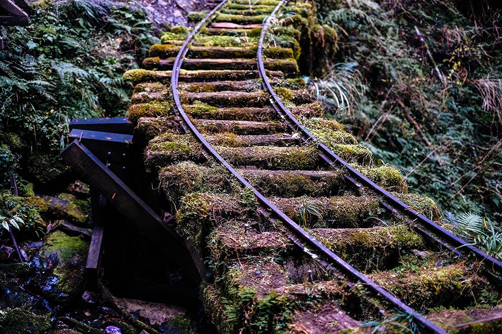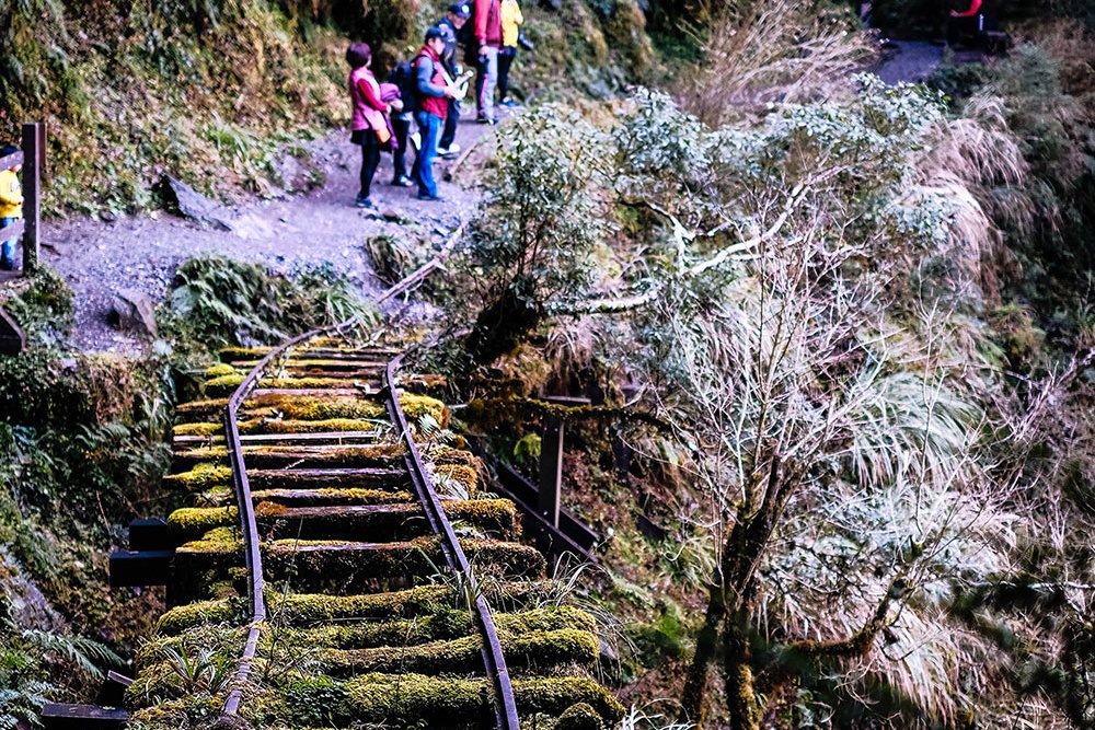 軌道僅供欣賞,真正的步道是木橋與吊橋