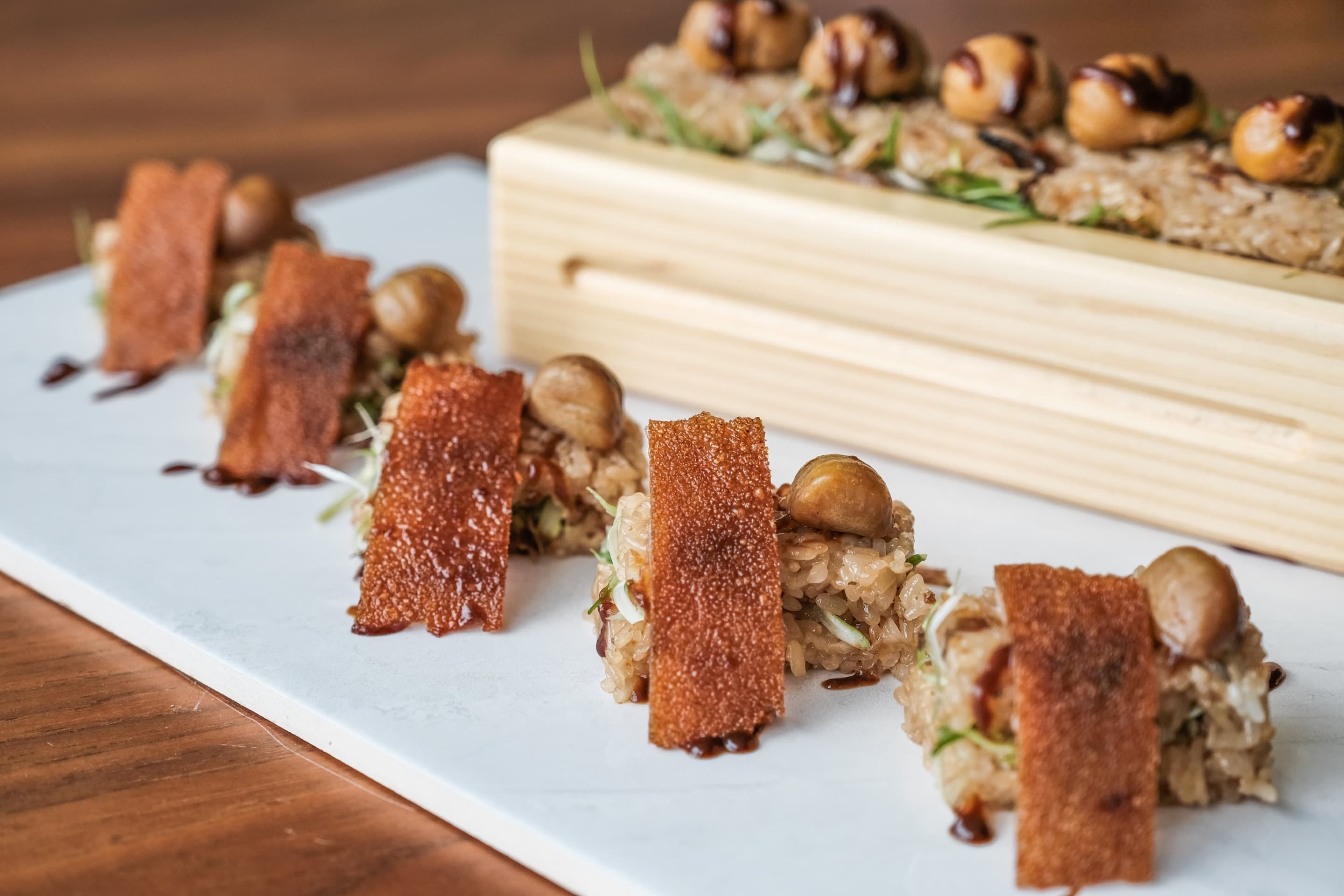 德記燒臘茶餐廳由傳承至第三代的文德食品行創立,雖尚未開幕,但憑藉著其數十年的餐飲經驗與香港資深老師傅精湛廚藝,在 GQ 城市野營嘉年華創下良好的銷售成績,不少人詢問其餐廳何時開幕,成功創造話題性。而其與吉贊油飯的料理合作,更是為 ZeraLand × Snow Peak 營火晚會畫龍點睛,以脆皮烤乳豬搭配吉贊油飯製成的箱壽司,佐上手工自製甜麵醬,雖是一口,卻嚐出師傅數十餘載的庖廚生涯精髓。