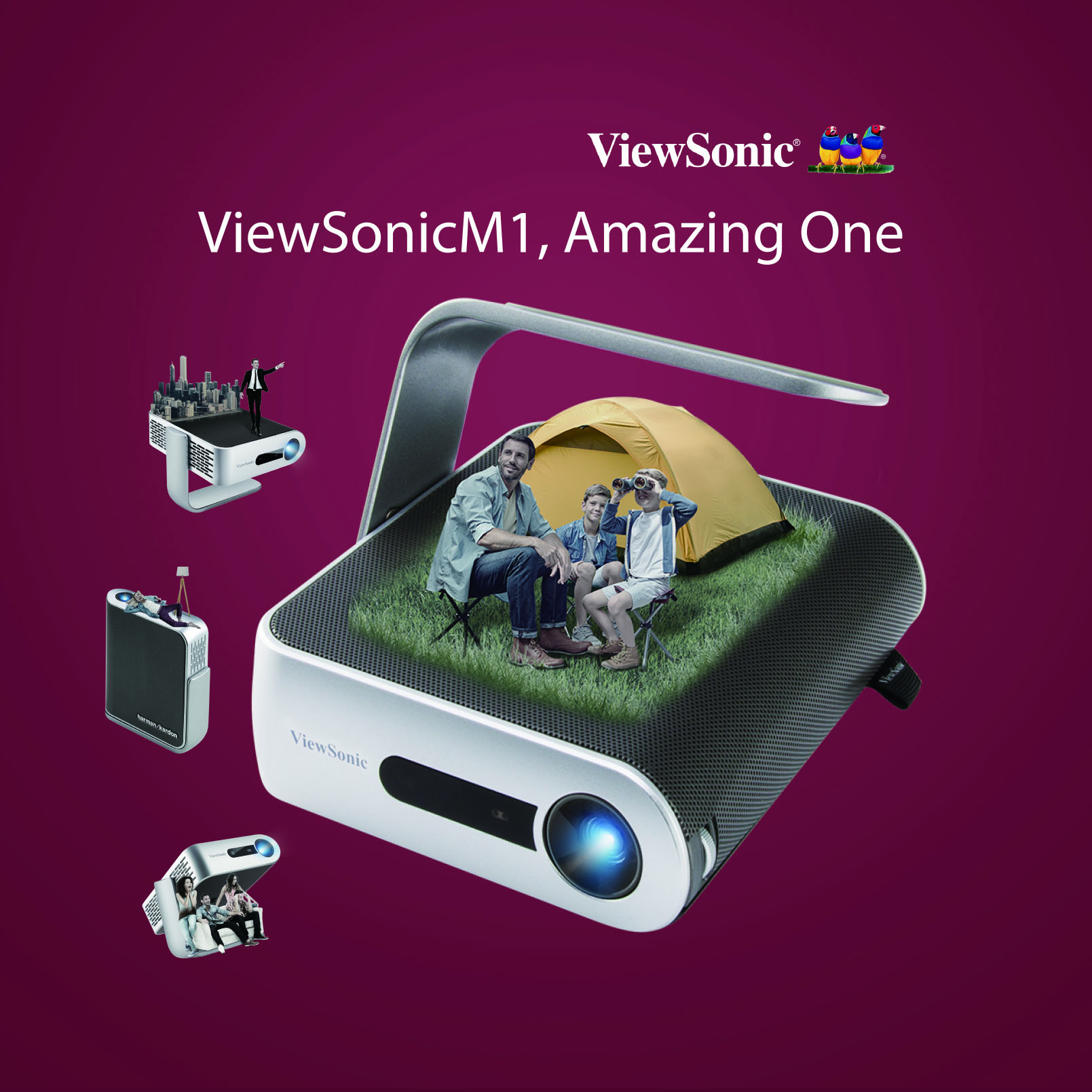 ViewSonic M1 為新推出之輕巧型攜帶式投影機,在「iF 產品設計獎」的加持下,新近面世的 ViewSonic M1 具備輕、薄、短、小等攜用規格, 其中一體成形的鏡頭蓋亦兼及智慧底座功能,提供 360 度的翻轉支撐,尤其適合於地勢多變的戶外環境使用。